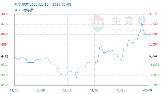 2月6日生意社PVC基准价为4742.00元/吨